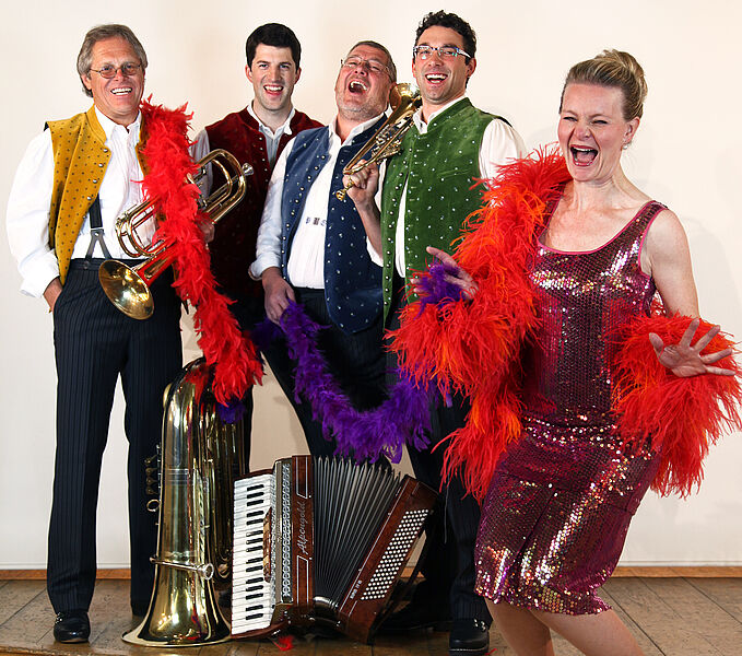 Das Münchner Kindl Gigi Pfundmair, u.a. bekannt als die Sängerin der Bayernhymne beim Platzkonzert auf dem Münchner Oktoberfest und die legendären 4 Hinterberger Musikanten bieten im Königlichen Hirschgarten bereits das vierte Programm in der Wintersaison 24/25. Die Idee dazu hatte Wirt Thomas Fesenmair, der seinen Gästen nicht nur hervorragende Speisen und ein süffiges Augustiner Bier, sondern auch besondere musikalische Schmankerl servieren möchte. Die Musikanten nebst Sängerin bleiben wieder, oder diesmal besonders, ihrem Motto treu: „Wir wollen immer eine riesen Gaudi bei höchstem musikalischen Niveau haben, denn damit reissen wir das Publikum automatisch mit in den Bann!“
