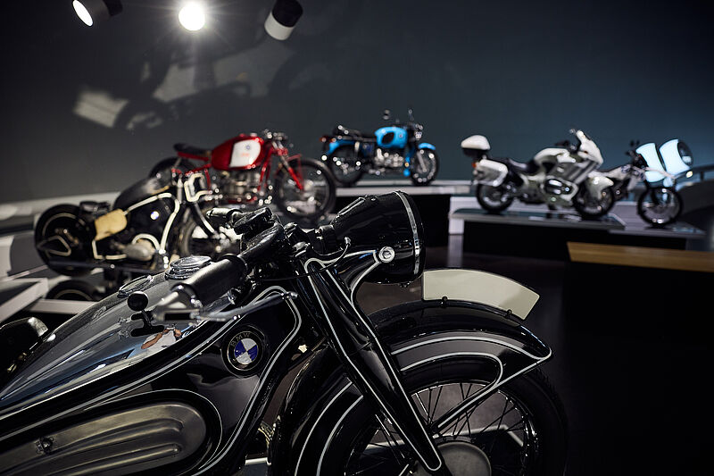 Neben über 150 historischen BMW Modellen – wie beispielsweise dem BMW 507, zu dessen Besitzern Elvis Presley gehörte, oder das Art Car BMW 3.0 CSL von Frank Stella – wartet die Ausstellung zum Thema 100 Jahre BMW Motorrad auf Sie. Eine interaktive Station bietet die Möglichkeit, ein eigenes GIF auf dem Motorrad BMW R 25 zu erstellen und zu teilen.