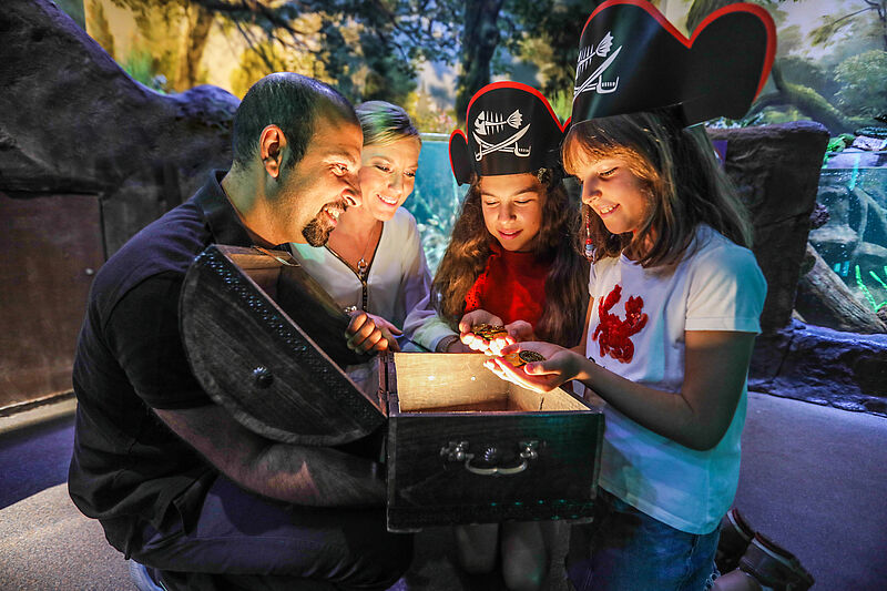 Denn ausgerechnet zur Langen Nacht treibt der Pirat im Münchner Großaquarium sein Unwesen. Die abenteuerliche Schatzsuche führt von der Isar bis zum Tropischen Ozean. Auf ganz Mutige wartet am Ende die Tropeninsel, wo man u. a. Riesenschnecken hautnah begegnen kann.