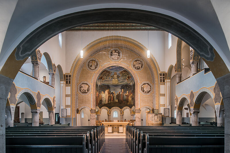 Akustische Skulpturen aus Orgelmusik und elektronischer Spiegelung regen an, die Sicht- und Klangachsen des Raumes individuell zu erkunden.