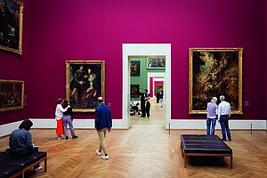 Die Alte Pinakothek zählt zu den bedeutendsten Gemäldegalerien Europas. Sie präsentiert die herausragenden Werke einer der weltweit größten Sammlungen europäischer Malerei vom 14. bis zum 18. Jahrhundert. Darunter befinden sich zahlreiche Hauptwerke von Dürer und Rubens sowie prominente Schlüsselwerke etwa von Rogier van der Weyden, Raffael, Tizian, Altdorfer, Cranach, Jan Brueghel d. Ä., van Dyck, Rembrandt, Poussin und Murillo. Für die aktuelle Präsentation der Sammlung „Alte Meister in Bewegung“ sind rund zweihundert Gemälde umgezogen. In den Sälen der Oberen Galerie begegnen sie sich jetzt in ungewohnten Zusammenhängen: Dialogische Konstellationen und thematische Gruppen laden dazu ein, die vertrauten Meisterwerke neu zu entdecken.