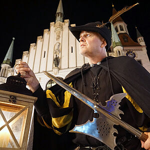 20.30 und 22.00: Gemeinsam mit dem Nachtwächter Wolfram erkunden die Gäste das mittelalterliche München. Es geht um die Aufgaben des Nachtwächters, eine Hinrichtung, das Jüngste Gericht, die erste Stadtmauer, das städtische Gefängnis und die Folter. Das alles verpackt mit etwas Schauspiel und Humor (Dauer 60 Minuten).