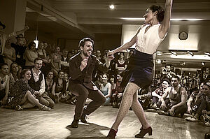 Enjoy an entire evening full of the American way of life from the 20s to the 50s with vintage dance shows, numerous taste-tester courses and hot swing and rock 'n' roll music by the Swing Lyons and, to coincide with Elvis's 90th birthday, Priscillas Rache (Priscilla's Revenge). The Vintage Club is THE address in Munich for vintage dance from the 20s to the 50s. Furnished in the decor of the 40s and 50s, it surrounds you in an extraordinary ambience. You’ll also be able to win a dance course!