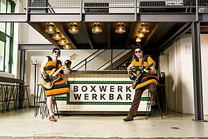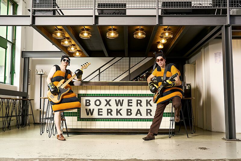 Viele Jahre war das Los Poppos Orchestra im Atomic Café zu Hause. Nach Auftritten im Vereinsheim Schwabing, der Polka Bar, dem Marstall - und zuletzt dem Deutschen Theater steigt die lustige Combo nun erstmals in den Boxring. Den Zuhörer erwartet dort eine „Melange zwischen jazzigem Schlager, Sixties-Pop und punkig sägenden Gitarren“ (SZ). Die Protagonisten dieser einzigartigen Kapelle sind Bandleader Samba Schulte, Bassist Ringo Amsel, die Chanteusen Petruschka de la Champagne und Giulietta de Monaco, Sänger, Trompeter und Gräfin Fuzzy Washington so wie Max „Monaco“ Miller an der Gitarre und Brainy Bob Hobbes am Schlagzeug. Garniert mit einer feschen Bläsersektion um Jelena, Martin Majestix und Wolfi Schlick (die Popposaunen!) geben sie im Boxwerk ein flotte Nummernrevue zum Besten, die die Beine des Publikums arbeiten lässt.
