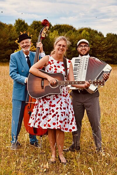 20.00: Die Schlagergang nimmt im Großen Saal (1. Stock) das Publikum mit auf eine Reise durch das Wirtschaftswunder – Mitsingen ausdrücklich erlaubt!
