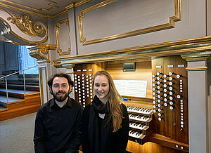 Märchenhafte Orgelmusik für vier Hände und vier Füße: Marie Koenigsbeck und Elias Kolz von der Hochschule für Musik und Theater München entführen das Publikum in eine Welt voller exotischer Klangfarben. Dabei steht der Spieltisch der Chororgel so zentral, dass man das seltene Spektakel von zwei Personen gleichzeitig an einer Orgel erleben kann. Zu hören sind u. a. Melodien aus Tschaikowskys „Nussknackersuite“.